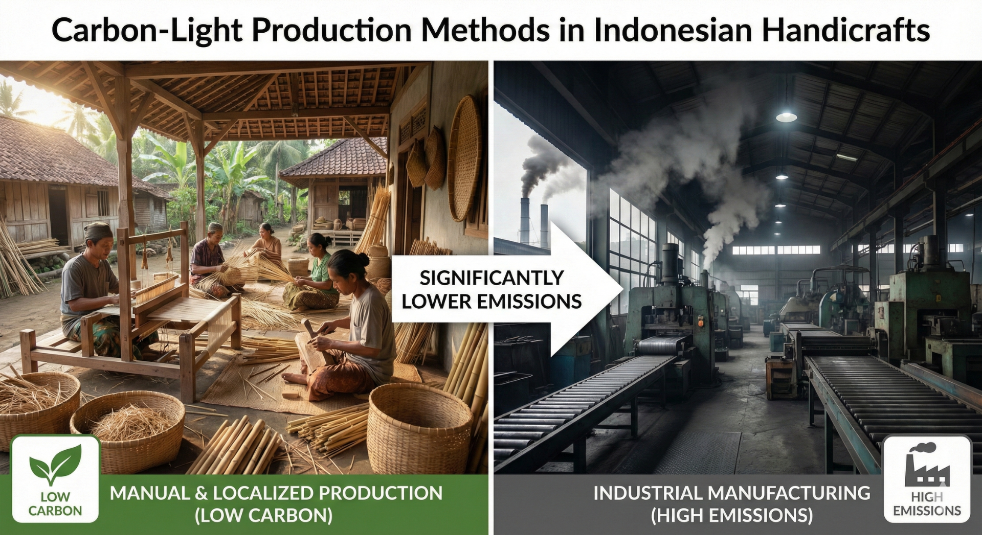 One of Indonesia’s strongest sustainability advantages lies in its carbon-light production model, particularly within the handicraft manufacturing sector. Unlike mass industrial production, Indonesian handicrafts are produced through decentralized, community-based systems that naturally limit energy consumption and greenhouse gas emissions. This production model aligns closely with the principles of green business practices and community-based circular economies, […]